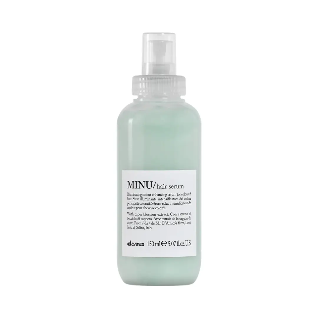DAVINES MINU Hair Serum je bezoplachové sérum určené k ochraně a zvýraznění lesku barvených vlasů.