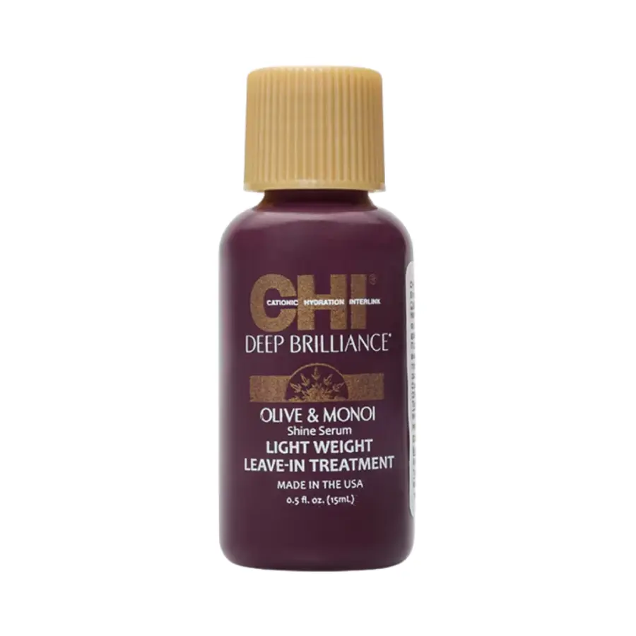 CHI deep brilliance olive & monoi sérum pečuje o kudrnaté vlasy a vlasy po chemickém ošetření. Prodlužuje účinky narovnání vlasů. Sérum usnadňuje rozčesávání, nezanechává usazeniny a dodává vlasům hebkost a hladkost.