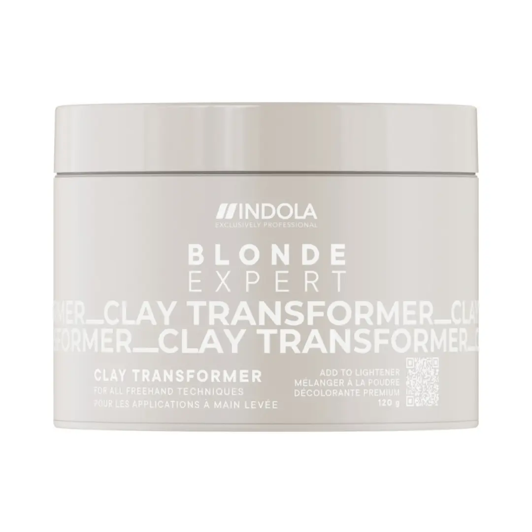 Stylingový produkt Indola Blonde Expert Clay Transformer přeměňuje zesvětlovač na hustou jílovitou texturu, ideální pro precizní balayage techniky.