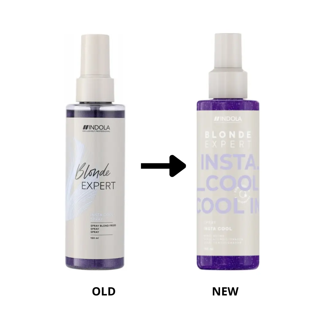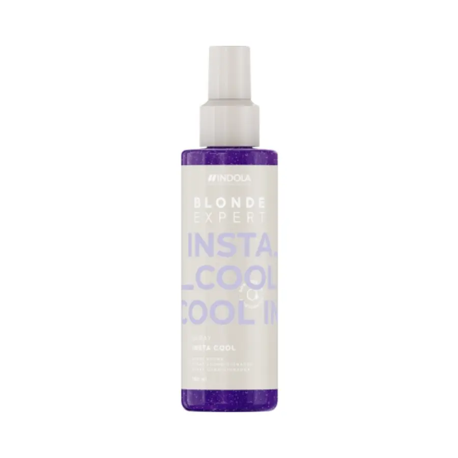 Bezoplachový sprej Indola Blonde Expert Care Instacool neutralizuje nežádoucí žluté tóny a dodává studený, jasný odstín blond vlasům.