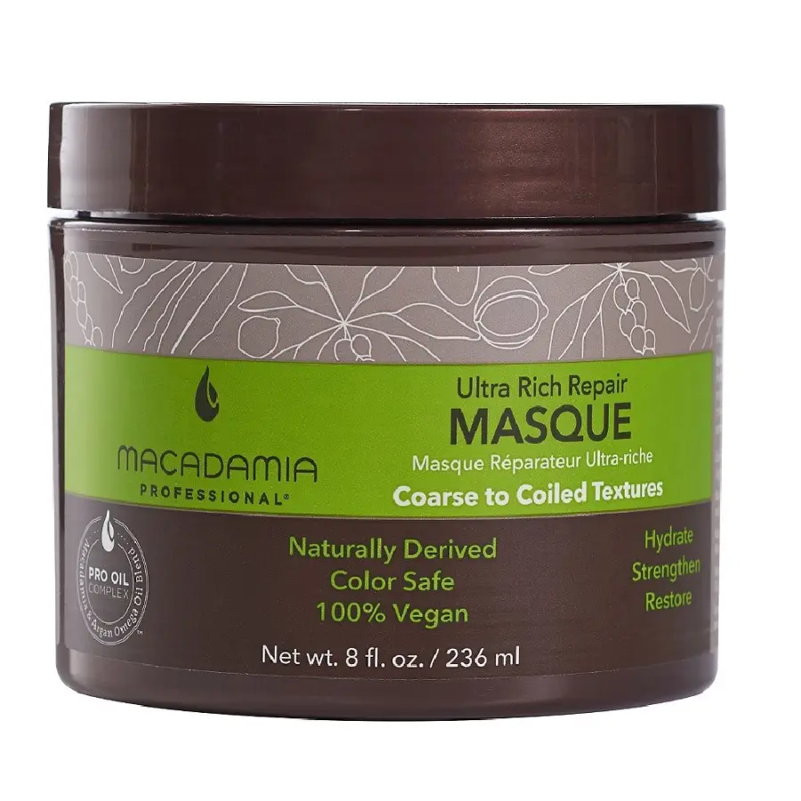 Macadamia Ultra Rich Repair Masque je ultra hydratační maska na vlasy pro silné, hrubé a krepaté vlasy. Poskytuje hloubkovou hydrataci velmi suchým a poškozeným vlasům. Chrání vlasy před poškozením a lámáním a chrání také jejich barvu. Posiluje vlasy a opravuje je. Vlasy jsou lesklé a hebké na dotek.