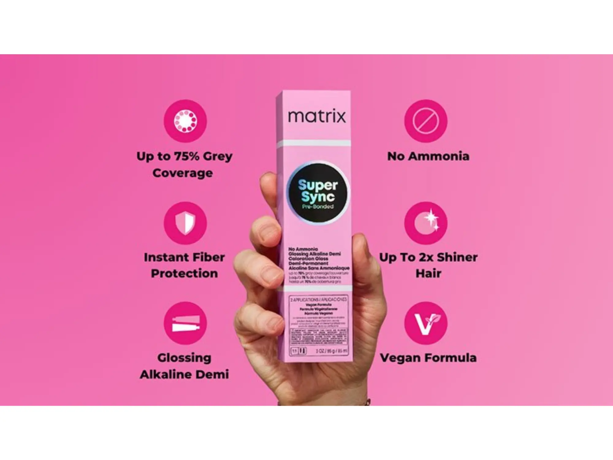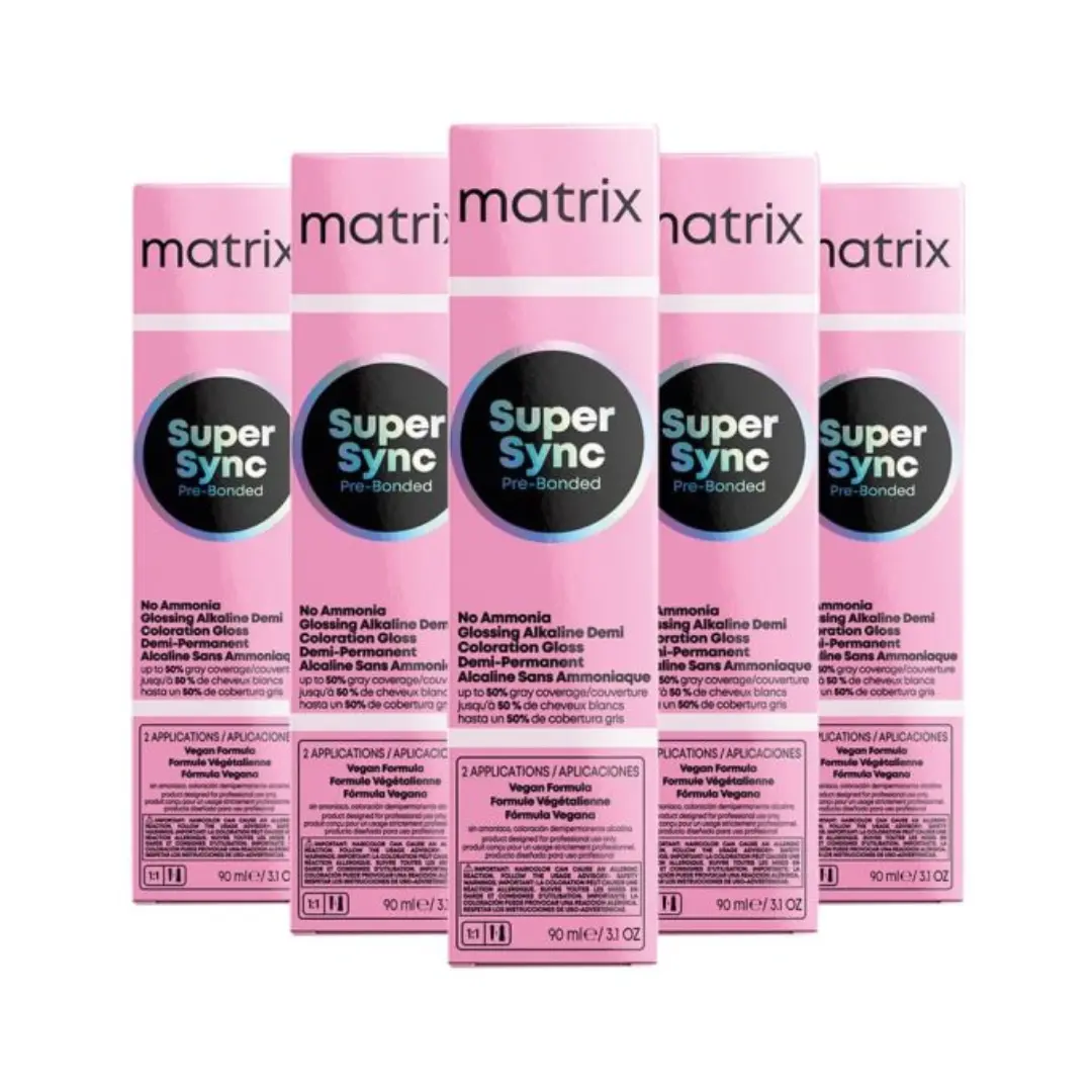 Alkalická demi-permanentí barva na vlasy Matrix Super Sync Pre-Bonded Glossing Alkaline Demi Toner s technologií Pre-Bonded poskytne okamžitou ochranu vlasového vlákna a až 75% krytí šedých vlasů.