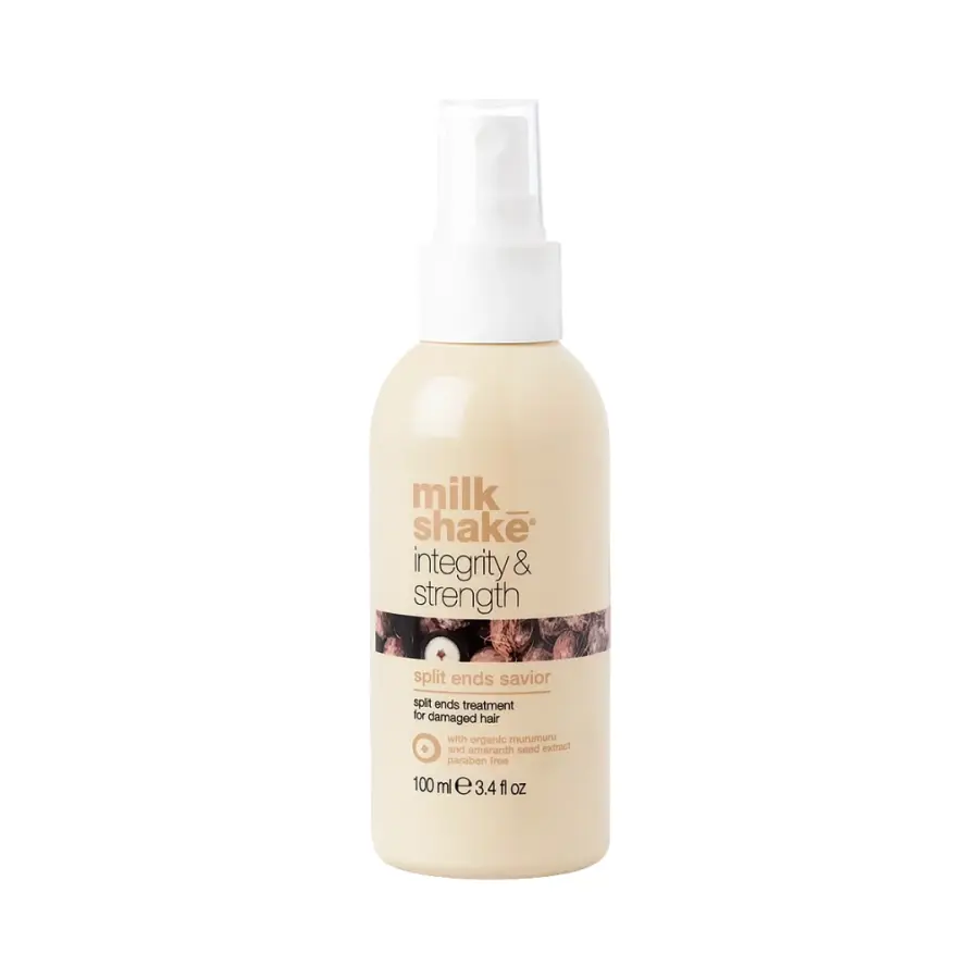 Milk_shake Integrity & Strength Split Ends Savior je bezoplachové ošetření pro roztřepené konečky, které pomáhá vlasy zacelit, posílit a chránit před dalším poškozením.