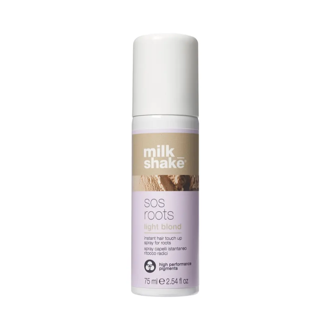Milk_shake SOS Roots Light Blonde je sprej pro okamžité zakrytí odrostů v odstínu světle blond, který sjednocuje barvu vlasů během několika sekund.